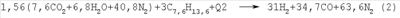 Третье преимущество заключается в том, что система может успешно выполнять риформинг при низкой температуре по сравнению со случаем, где предпринимается попытка преобразовать бензин. Реакция парового риформинга бензина выражается следующей формулой реакции.