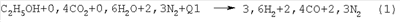 Символ “Q1” в уравнении (1) выше представляет теплоту реакции, которая поглощается в вышеприведенной реакции риформинга. Поскольку вышеупомянутая реакция риформинга является эндотермической реакцией, теплотворная способность, поддерживаемая риформированным газом, которая указывается правой стороной уравнения (1), выше теплотворной способности, поддерживаемой этиловым спиртом до реакции, которая указывается левой стороной того же уравнения. Теплообменник 24 может передавать тепло выхлопного газа через выпускной канал 28 в камеру 26 риформинга (катализатор риформинга топлива) и позволяет поглощать это тепло в вышеупомянутой реакции риформинга. Другими словами, система согласно настоящему варианту осуществления может выделять тепло выхлопного газа и преобразовывать топливо (этиловый спирт) в вещества (H2 и CO), имеющие более высокую теплотворную способность, посредством использования выделенного тепла.