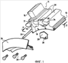 Согласно существенному отличительному признаку изобретения замок 28 содержит изогнутую пластину 38 с вогнутостью, направленной вперед, при этом вырезы 34 наклонены вперед и выполнены с возможностью захождения в них краев упомянутой изогнутой пластины (см. фиг.4).