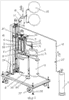 Емкости 4, 8, 9 закреплены посредством разъемных кронштейнов на установочном устройстве 22 с возможностью поворота на одинаковом расстоянии относительно оси вращения установочного устройства 22, расположенного на платформе 23, на которой также установлена жестко неподвижная стойка 24. В верхней части неподвижной стойки 24 на кронштейне 25 закреплена крышка 21, размеры которой соответствуют размеру каждой из горловин емкостей 4, 8, 9 (размеры горловин емкостей равны между собой). На крышке 21 подвешены баллоны-компрессоры 2. Неподвижная стойка 24 оснащена механизмом подъема 26 емкостей, при этом с помощью установочного устройства 22 и механизма подъема 26, расположенного на неподвижной стойке 24, обеспечивают поочередный подъем каждой емкости до совмещения горловины с крышкой 21. Платформа 23 снабжена средствами перемещения колесами и средствами для фиксации платформы, например домкратами 28.