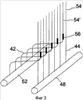 Фиг.3 схематически показывает элемент нижней части кипятильных трубок котла с циркулирующим псевдоожиженным слоем в соответствии с предпочтительным вариантом осуществления настоящего изобретения. Этот чертеж показывает впускной коллектор 48 передней стенки, первый впускной коллектор 52 решетки и кипятильные трубки, присоединенные к ним. Конечно, чертеж может также показывать, соответственно, кипятильные трубки, присоединенные к впускному коллектору задней стенки и второму впускному коллектору решетки. Как было показано ранее в связи с фиг.2, трубки решетки предпочтительно расположены вдоль центральной части сечения решетки топки, и длина по существу горизонтального участка трубок 42 решетки, параллельных решетке топки, таким образом, приблизительно составляет половину всей ширины решетки топки.