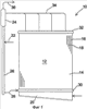 В варианте осуществления фиг.2 находятся два других впускных коллектора, расположенных внутри воздушной камеры 20, так называемые первый и второй впускные коллекторы 52, 54 решетки. Трубки 42 решетки соединены с впускными коллекторами решетки, каждый из которых предпочтительно соединен с кипятильной трубкой передней стенки 14 или задней стенки 38, как описано ниже. Поскольку впускные коллекторы 52, 54 решетки тоже соединяются, как показано на фиг.1, с опускной трубой только посредством впускного патрубка, присоединенного к концу впускного коллектора, то нет впускных патрубков, соединенных с центральной частью впускных коллекторов 52, 54 решетки, которые мешали бы строению неразделенной воздушной камеры. Данные впускные коллекторы 52, 54 решетки, проходя по всей длине стенок котла, также значительно усиливают конструкцию решетки топки и, таким образом, уменьшают потребность в других несущих конструкциях.