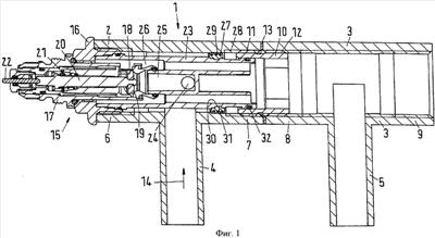 Трубка 23 имеет круговой паз 30. Уплотнение 27 снабжено проходящим радиально внутрь круговым выступом 31, входящим в зацепление с пазом 30. Такой вариант выполнения имеет два преимущества. Во-первых, уплотнение 27 защищено от смещения по трубке 23. Во-вторых, данная конструкция обеспечивает улучшенную герметизацию, в том числе между трубкой 23 и уплотнением 27.