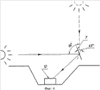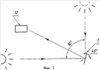 Устройство работает следующим образом. Попарно идентичные приводы вращения 3 и 9 в виде торсионов из металла с эффектом памяти формы, предварительно попарно скрученных друг относительно друга, 4 обеспечивают зенитное и азимутное вращение поверхности зеркального отражателя 7 относительно направления на Солнце. Вращение попарных приводов происходит за счет эффекта памяти формы, реализуемого при перепаде температур между ними, возникающего из-за различной освещенности Солнцем. Степень освещенности зависит от положения Солнца и дополнительно регулируется световыми экранами 4 и 10. Работа устройства происходит в двух режимах: а) при использовании в системе солнечных электростанций, б) в системе искусственной инсоляции горных долин. В первом случае зеркальный отражатель расположен выше объекта освещения 12 наведенным лучом, а во втором – ниже (фиг.3,4). Как видно из приведенных рисунков, в обоих случаях при изменении положения Солнца по отношению к зеркальному отражателю 7 на угол , плоскость отражателя должна повернуться на угол 1/2 для сохранения (первоначально наведенного на объект) отраженного луча на объекте. Во втором случае устанавливают два зеркальных отражателя (второй на фиг. не показан), один с восточной, другой с западной стороны. Приводы 3 и 9, действующие напрямую (без редукторов) на оси вращения север-юг и восток-запад, ориентируют изначально направленную в сторону Солнца воображаемую антенну, закрепленную на оси север-юг в точке поворотного центра симметрии плоскости отражателя, точно на Солнце. Это происходит за счет автоматического выравнивания освещенности приводов включенных по дифференциальной схеме. Введение редукторов, расположенных между приводами и поворотными осями, имеющих передаточный коэффициент 1/2, обеспечивает ориентацию зеркала по отношению к Солнцу и сохранение отраженного луча на объекте при перемещении Солнца по небосводу.