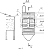 Зерносушилка состоит из надсушильного бункера (зона I), куда подается самотеком из загрузочной нории 2 сырое зерно, двух параллельно расположенных сушильных шахт (зона II) и охладительной зоны (зоны III).