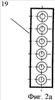 На фиг.2а и 2б представлены варианты набора сопел для измерения расхода в других диапазонах. Ячейка 18 представляет собой геометрически подобное струйное сопло струйного генератора, выраженное в виде ячейки 20 струйного генератора (фиг.1), для достижения подобных характеристик расхода, например по коэффициенту расхода сопла. Возможно и более упрощенное выполнение ячейки 18 (фиг.2б), которое несколько увеличивает погрешность измерения расхода.