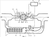Струйный генератор 22 работает следующим образом. При наличии начального расхода происходит возбуждение колебаний струи. Струя истекает через сопло 2 в камеру 10 и благодаря эффекту Коанда прижимается к одной из стенок 4 или 11, допустим, к стенке 11. Тогда струя поступает на выходной канал 9, далее большая ее часть направляется к выходному каналу 8, меньшая – к каналу обратной связи 12. Меньшая часть поступает на управляющий канал 13, в котором через некоторое время давление возрастает до значения, достаточного для переключения струи от стенки 11 к стенке 4. Далее процесс повторяется. Колебания сигналов давления в каналах 6 и 9 преобразуются в электрические сигналы преобразователем 7, который может быть выполнен, например, в виде пьезоэлемента. Вторичная электронная аппаратура усиливает и формирует сигналы в удобные для регистрации стандартные формы.