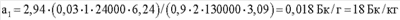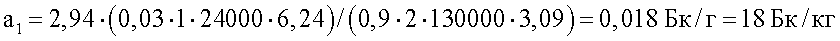 где: a1 – удельная активность Ra-226 в пробе почвы, Бк/г;
