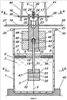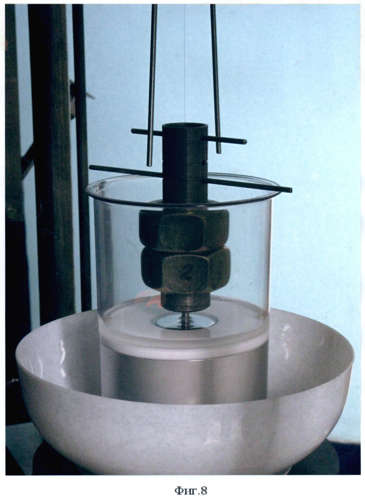 1. Модель мантии с твердым ядром, включающая содержащий жидкость резервуар с вертикальной осью симметрии и ядро, подвешенное на гибком элементе, отличающаяся тем, что жидкость является жидким металлом и покрыта диафрагмой, диафрагма касается стенок резервуара и имеет центральное отверстие, ограничивающее свободную поверхность жидкости, ядро имеет ось симметрии и погружено в жидкость частично, верхняя часть ядра соединена с нижней его частью стержнем, меньшим по диаметру, чем эти части, и проходящим через отверстие диафрагмы, а момент массы ядра относительно нижнего конца гибкого элемента больше аналогичного момента массы вытесненной жидкости, причем каждый из указанных моментов равен произведению соответствующей массы на минимальное расстояние от центра этой массы до гибкого элемента.