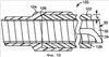 Хотя любой стандартный тип несущего сердечника 30 может использоваться в вариантах осуществления по Фиг.2В и 3В, более подходящими являются жесткие цилиндрические сердечники в виде спирально намотанной ленты, например, раскрытые в патентах США 3.515.798, 4.503.105, 4.871.599 и 4.934.227. Как видно из Фиг.2 В и 3 В, смежные витки ленты 32, формирующие несущий сердечник 30, взаимосвязаны по периферийным областям так, чтобы сердечник 30 мог выдерживать свойственные растягиваемому адаптеру 20 радиальные силы. Часть ленты 32, т.е. удаляемая полоса 34, отводится назад через центр сердечника 30 и может быть вручную захвачена на одном конце сердечника 20. За счет вытягивания удаляемой полосы 34 витки сердечника 30 будут отделяться поодиночке. За счет вынимания несущего сердечника 30 из адаптера 20, 120 по одному витку спиральной ленты за раз адаптеру 20, 120 обеспечивают постепенную радиальную усадку на кабель 10. Ручное вытягивание удаляемой полосы 34 обеспечивает полностью соответствующее усилие для разматывания и удаления съемного сердечника 30, оставляя адаптер 20, 120 плотно закрепленным на кабеле 10.