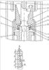 Нам неизвестны дугогасительные устройства высоковольтных газонаполненных автокомпрессионных выключателей, в которых повышение отключающей способности и надежности функционирования дугогасительного устройства при уменьшении радиальных размеров дугогасительного устройства и мощности привода осуществляется благодаря введению для калибра L3/du диффузорной части изоляционного сопла соотношения: 23/du<4, а в отключенном положении, в конструкции выполнены соотношения 2c/du<4, 0.0x/duс – расстояние от внешней оконечности неподвижного дугогасительного контакта до среза изоляционного сопла, Lх – расстояние от внешней оконечности неподвижного дугогасительного контакта до внешней оконечности экрана главного неподвижного контакта.,>