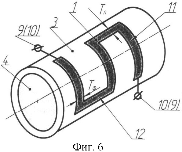 На фиг.6 изображен разрушаемый проводник заявляемого взрывного формирователя тока с азимутальным направлением тока во фрагментах.