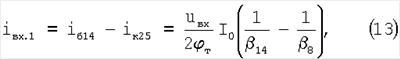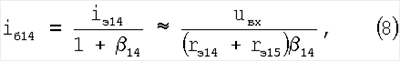 Так как транзисторы 8, 14 и 15 идентичны и имеют одинаковый тип проводимости, то у них 8= 14= 15, поэтому входной ток ДУ существенно уменьшается.