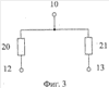 На чертеже фиг.3, в соответствии с П2 формулы изобретения, дополнительный делитель токов 11 содержит первый 20 и второй 21 вспомогательные резисторы, первые выводы которых подключены ко входу 10 дополнительного делителя токов 11, а вторые – к соответствующим выходам 12 и 13 дополнительного делителя токов 11.