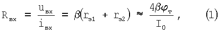 Существенный недостаток известного устройства состоит в том, что он имеет сравнительно небольшое входное сопротивление для дифференциального сигнала, существенно зависящее от коэффициента усиления по току базы ( ) входных транзисторов VT1, VT2 и статического режима (I0) их общей эмиттерной цепи: