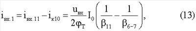 Так как транзисторы 6, 7 и 11 идентичны и имеют одинаковый тип проводимости, то у них 6= 7= 11, поэтому входной ток ДУ существенно уменьшается.