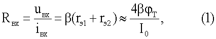 Существенный недостаток известного устройства состоит в том, что он имеет сравнительно небольшое входное сопротивление для дифференциального сигнала, существенно зависящее от коэффициента усиления по току базы ( ) входных транзисторов и статического режима (I0) их общей эмиттерной цепи: