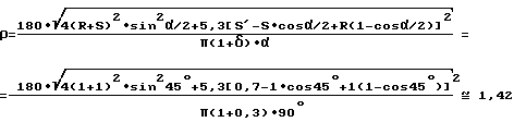 Пример конкретного выполненияПри испытаниях на загиб холоднокатаной полосовой стали толщиной S = 1 мм и с относительным удлинением при разрыве = 30% = 0,3 трещинообразование началось при угле изгиба = 90o и при радиусе изгиба R = 1 мм. Величина утонения по биссектрисе угла составила: S = 0,3 мм, т.е. S’= S – S = 1,0 – 0,3 = 0,7 мм.