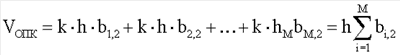где VD – объем дефекта в позвоночном канале; VОПК – объем позвоночного канала на уровне дефекта пораженного сегмента; k – расстояние между построенными прямыми; ai – протяженность отрезков, заключенных внутри контуров дефекта на изображениях в продольном сечении; bi – протяженность отрезков, заключенных внутри контуров дефекта на уровне пораженного сегмента на изображениях в поперечном сечении; bi, 2 – протяженность отрезков, заключенных внутри контуров позвоночного канала на уровне дефекта на изображениях в поперечном сечении; h – высота дефекта в продольном сечении, соответствующая протяженности отрезка аi, заключенного внутри контура дефекта на изображениях в продольном сечении максимальной протяженности; М – число вспомогательных построенных прямых линий.