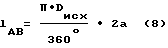 Согласно исходным условиям угол можно обозначить как а угол и величину смещения = OA = OB – определить из схемы трансформации исходной прослойки в правильное кольцо, что представлено на фиг. 2.