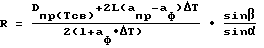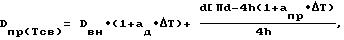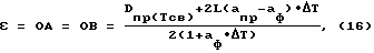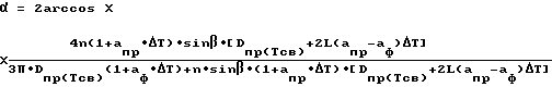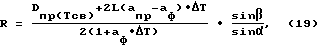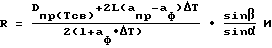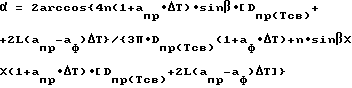 Можно считать, что позиции фиксации в точках C и D концов скруток 3 при Tсв, перемещаясь вдоль радиально ориентированных осей OM и ON, займут положение, соответствующее точкам C’ и D’. Поскольку это перемещение будет определяться тепловым расширением материала элемента, на котором зафиксированы скрутки 3, то имеет место зависимостьOC = OD = OC(1+aф![]() T) = OD(1+aф![]() T) (12)где aф – ТКЛР материала элемента, на котором фиксируются скрутки 3. Обычно это элемент сварочной оснастки 4 (фиг. 1), хотя в частном случае фиксации скрутки 3 может быть и на самой свариваемой детали 1 за пределами зоны кольцевого сварного шва, если это допускает конструкция сварного узла. Из построения на фиг. 2 следует, что OA’ = OC’ – A’C’, или с учетом выражений (3) и (12) того, что L(Тсв) = A’C’ и L = AC, и поскольку OA’ = OB’ = 1/2Dпр(Тсв), 1/2Dпр(Tсв)= OC(1+aф ![]() T)-L(1+aпр![]() T) (14)а т.к. OC = OA + L, то ![]() откуда ![]() где Dпр(Тсв) определяется выражением (7). Положение дуги AB относительно центра O определено, т.к. имеются величина смещения = OA = OB и значение длины дуги lAB. Для определения радиуса R кривизны дуги 8 прослойки, можно использовать то, что катет OG является общим для треугольников OAG и O’AG, т.е.