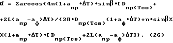 AG = O A sin = OAsin , (17)откуда ![]() или, с учетом (16), ![]() Значение угла следует из треугольника AGQ, где GAQ = /2, т.к. треугольник OAQ равнобедренный и O AQ = 90 – , а поскольку в треугольнике OAG O AG = 90 – /2, то GAQ = O AQ![]() O AG = (90 – /2)-(90 – ) = /2; в AGQ![]() где AG = OA sin , или, с учетом (16),![]() а AQ можно найти из известной формулы Гюйгенса для длины дуги lAB = 2AQ + 1/3(2AQ – AB), (22) откуда AQ = 1/8(3lAB + AB). (23) Выражая длину дуги lAB через длину дуги lA’B’, которая определяется выражением ![]() получаем ![]() и поскольку AB = 2 ![]() можно записать выражение для AQ ![]() или ![]() Тогда из соотношения (20) и с учетом (21) и (25) ![]() или ![]() Из выражений (16), (19) и (26) следует, что величину смещения точек A и B от центра O, радиус кривизны R дуги прослойки и угол можно регулировать, выбирая значения n и L. Исходным условием служит размещение дуги AB прослойки в зоне кольцевого сварного шва соответствующего участка зоны сопряжения и, конечно, требуемая конфигурация прослойки.