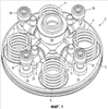 На фиг.1 показаны в перспективе существенные части фиксирующего механизма 2 для зажимного патрона вместе с зажимной втулкой 30. Фиксирующий механизм состоит по существу из кольцеобразного управляющего поршня 3, четырех пружин 4 сжатия, четырех зажимных элементов 5, а также управляющих элементов в виде четырех фиксирующих штифтов 10 и четырех штифтов 17 раскрытия. Поршень 3 посредством пружин 4 сжатия опирается на верхнюю часть корпуса (не показана) зажимного патрона, причем пружины 4 сжатия в смонтированном состоянии стремятся прижать поршень 3 в его нижнее конечное положение, в котором фиксирующий механизм находится в зафиксированном состоянии. Как фиксирующие штифты 10, так и штифты 17 раскрытия жестко соединены с поршнем 3. Выполненные в виде толкателей зажимные элементы 5 служат для того, чтобы фиксировать зажимную втулку 30 в зажимном патроне, причем они одновременно нагружают зажимную втулку 30 в осевом направлении, т.е. по оси Z, чтобы ее вместе с приспособлением для крепления обрабатываемого изделия, в котором обычно закреплена зажимная втулка, притянуть к зажимному патрону. Фиксирующие штифты 10 снабжены наклонной поверхностью 11 прижатия, которую соответствующий зажимной элемент 5 при движении поршня 3 вниз прижимает в радиальном направлении во внутрь в его положение фиксации. Так как пружины 4 стремятся удерживать поршень 3 в его нижнем конечном положении, то зажимные элементы 5 посредством фиксирующих штифтов 10 зажимаются в своем положении фиксации, пока поршень 3 пневматически не переместится вверх в свое положение расфиксирования. При движении вверх поршня 3 зажимные элементы 5 посредством штифтов 17 раскрытия сдвигаются в радиальном направлении наружу, что ниже описывается еще более подробно. Вместо четырех фиксирующих штифтов 10 возможны, конечно, также варианты с большим или меньшим четырех количеством фиксирующих штифтов, причем должно быть предусмотрено по меньшей мере два фиксирующих штифта.