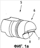 Обращенная к зажимной втулке 30 головная часть соответствующего зажимного элемента 5 снабжена соответствующей наружному контуру зажимной втулки 30 торцевой стороной, которая в положении фиксации соответствующего зажимного элемента 5 всей поверхностью прилегает к зажимной втулке 30. На фиг.1а показан в перспективе зажимной элемент 5 в увеличенном виде спереди. Головная часть зажимного элемента 5 снабжена изогнутой поверхностью 7 прижатия, из которой по центру выходит отверстие 8. Указанная поверхность 7 прижатия соответствует контуру зажимной втулки, так что зажимной элемент 5 своей изогнутой поверхностью 7 прижатия прилегает к соответствующей зажимной втулке по плоскости.