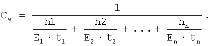 Эталонная стенка в этом случае разделена на N цилиндрических стеночных частей, каждая из которых имеет свою собственную толщину стенки, собственную высоту и собственный модуль упругости. Это означает, что можно определить жесткость эталонной стенки в соответствии с упомянутым количественным примером следующим образом.