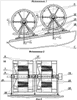 26. Спасательная шлюпка с устройством для обеспечения ее хода по п.18, отличающаяся тем, что генераторы в ней размещены соосно в ряд друг за другом, а для уменьшения их общей длины валы роторов соединены друг с другом с помощью муфт или хомутов с установкой их на стойках на общей плите, при этом концы валов могут быть срезаны или укорочены, или для всех этих роторов вал выполнен общим, а промежуточные подшипниковые щиты и вентиляторы могут быть исключены.