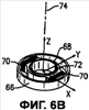 Обращаясь теперь к фиг.6А, отметим, что составной подшипник 64 механизма 60 парирования крутящего момента в общем включает в себя внешний элемент 66, внутренний элемент 68, установленный внутри внешнего элемента 66 через упругий элемент 70, и сферический подшипник 72, установленный внутри внутреннего элемента 68. Вал 62 парирования крутящего момента определяет ось 74. Составной подшипник 64 установлен на валу 62 парирования крутящего момента, чтобы обеспечить пять степеней свободы (сферическую-линейную-упругую) движения относительно оси 74 (фиг.6В). Сферический подшипник 72 имеет цилиндрическую внутреннюю поверхность 76 для скользящего движения по валу 62 парирования крутящего момента и сферическую внешнюю поверхность 78 для поворотного движения внутри внутреннего элемента 68 (фиг.6С).