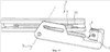 Для загрузки инструмента 6 для наложения клипсов служит устройство 25 загрузки клипсов, которое в исходном положении расположено ниже инструмента 6 для наложения клипсов. В устройстве 11 подведения клипсов клипсы в ряд, параллельно продольной протяженности инструмента 6 для наложения клипсов, подаются в механизм разъединения, который в примере осуществления изобретения выполнен как устройство 9 подъема клипсов. Устройство 9 подъема клипсов включает в себя подъемный элемент 18, который приводится в движение от приводного устройства 19 через кривошипно-шатунный механизм 20. Лежащий первым в ряду клипс захватывается подъемным элементом и передвигается в положение, которое находится перед зажимающим инструментом 4 (Фиг.7). Движение подачи или движение подъема подъемного элемента 18 перпендикулярно направлению подачи подведенных в ряду подъемного элемента 18 клипсов в устройстве 11 подведения клипсов. Из вышеописанного разъяснения выявляется тот факт, что для загрузки инструмента 6 для наложения клипсов клипсы подаются, соответственно, по одному. Для этого несколько клипсов 10 в ряду подаются в определенном направлении, в частности, параллельно продольной протяженности инструмента 6 для наложения клипсов, а во втором направлении движения передаются перпендикулярно этому направлению для загрузки инструмента 6, для наложения клипсов отдельными клипсами. При смене направления движения происходит разъединение клипсов.