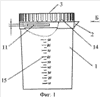 Крышка 3 выполнена в виде тела вращения с указателем 13 открытого состояния канала 6, расположенным на верхней ее поверхности и выполненным, в частности, в виде метки положения выреза 5 с сокращенной надписью «откр». Дополнительно крышка 3 имеет наружную рифленую боковую стенку 14 для простоты и удобства ее поворота. Для возможности дозирования корпус 1 емкости выполнен с мерными рисками 15.