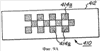 Фиг.9А и 9В показывают стадии в процессе изготовления устройства задержки 410, в котором (Фиг.9А) слой топлива 414а нанесен на подложку 412 рисунком шахматной доски, а слой окислителя 414b (Фиг.9В) нанесен поверх рисунка шахматной доски, чтобы покрыть свободные квадраты рисунка шахматной доски топливного слоя. Предпочтительно, чтобы один или оба из квадратов топливного слоя 414а и слоя окислителя 414b был сделан большего размера так, чтобы смежные квадраты топлива и окислителя наложились на краях квадратов, чтобы гарантировать, что слои топлива и окислителя находятся в хорошем контакте друг с другом. Как видно на Фиг.9В, устройство приема входного сигнала 416 и устройство передачи сигнала 418 находятся на линии передачи сигнала с, соответственно, начальной точкой 414с и точкой выхода 414d полосы настройки времени задержки 414.