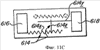 Подложка 112 может, конечно, иметь любой размер, подходящий для означенного использования устройства задержки. Для устройства задержки, предназначенного для использования в оболочке детонатора стандартного размера, как описано ниже, подложка 112 обычно имеет ширину, выбранную примерно равной внутреннему диаметру оболочки детонатора, для обеспечения плотного прилегания внутри. Возможно, может использоваться каркас установки (не показанный), подогнанный по размеру для плотного прилегания внутри оболочки детонатора, и тогда подложку 112 подгоняют по размеру для соответствия каркасу установки. Подложка 112 может иметь длину от около одной четверти дюйма (0,64 см) до около 1,2 дюймам (3,05 см), чтобы легко вмещать оболочку детонатора стандартного размера. Подложка 112, которая может быть сделана из обычной платы печатной схемы, должна только иметь достаточную толщину для обеспечения достаточной жесткости и механической прочности, чтобы ее можно было использовать в процессе изготовления и установки во взрывчатом устройстве без физического повреждения полос на активной поверхности. Например, подложка 112 может быть от около 1/16 до 1/8 (0,159 до 0,318 см) толщины. Стрелки S и Е на Фиг.5 и 6 описаны ниже.