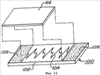 На Фиг.13 показано устройство задержки 910, включающее подложку 912, на которой расположена полоса настройки времени задержки 914. Как и на Фиг.12, устройство приема входного сигнала и устройство передачи сигнала на Фиг.13 опущены, но входная стрелка S схематично указывает вход в устройство приема входного сигнала, и стрелка выхода Е схематично указывает выход из устройства передачи сигнала. В этом варианте реализации полоса настройки времени задержки 914 включает входную “шину” 914а, связанную с выходной “шиной” 914b множеством линейных полос 914с. Линейные полосы 914с отделены друг от друга простирающимися в длину зазорами 914d. В геометрии полосы настройки времени задержки 914 простирающиеся в длину зазоры 914d не прерывают сигнал, а просто отделяют линейные полосы 914с друг от друга. Понятно, что если бы “шина” 914а и “шина” 914b были устранены, то линейные полосы 914с могли непосредственно соединить устройство приема входного сигнала с устройство передачи сигнала. Шина 914а и шина 914b имеют то преимущество, что их большая площадь по сравнению с одной из полос 914с обеспечивает большее количество энергетического материала, смежного как с устройством приема входного сигнала, так и с устройством передачи заряда (не показаны на Фиг.13, но расположены, соответственно, около положений стрелок S и Е). Увеличенное количество энергетического материала дает возможность обеспечить надежную передачу сигнала от устройства приема входного сигнала (по стрелке S) и к устройству передачи сигнала (по стрелке Е).
