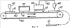 На Фиг.10 показан схематично в боковой проекции один вариант реализации поточной линии для производства устройств задержки настоящего изобретения. Бесконечная конвейерная лента 136 перемещает множество подложек 512 последовательно мимо первой печатающей головки 138, которая наносит на подложку 512 подходящим рисунком слой топлива (не показанный на Фиг.10). После прохождения первой печатающей головки 138 подложка 512 с нанесенным на нее слоем топлива проходит через первую сушильную печь 140, в которой нанесенный слой топлива тщательно сушится. Затем подложка 512 проходит под второй печатающей головкой 142, которая наносит слой материала окислителя (не показан на Фиг.10) подходящим рисунком, который контактирует с ранее нанесенным слоем топлива. Затем подложка 512 проходит через вторую сушильную печь 144, в которой тщательно сушится нанесенный слой окислителя. Если должны быть применены многочисленные слои топлива и слои окислителя, процесс может быть повторен столько раз, сколько необходимо, или может быть удлинена конвейерная лента, чтобы установить дополнительные печатающие головки и сушильные печи. В некоторых случаях как слой топлива, так и слой окислителя могут быть нанесены до высыхания. Затем готовое устройство задержки 510 удаляется с конвейерной ленты.