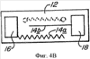 Пилообразная конфигурация некоторых из полос используется только для обеспечения более длинной полезной длины полосы в пределах ограниченного пространства, предоставленного подложкой 12. Очевидно, может быть использован любой подходящий рисунок полос (спиральный, змеевидный и т.д.). Подложка 12 может, конечно, иметь любой размер, подходящий для намеченного использования устройства задержки. Для устройства задержки, которое предназначено для использования в оболочке детонатора стандартного размера, как описано ниже, ширина подложки 12 обычно выбиралась так, чтобы почти точно соответствовать внутреннему диаметру оболочки детонатора, так чтобы плотно к ней прилегать. Каркас установки (не показанный), подогнанный по размеру, чтобы плотно прилегать внутри оболочки детонатора, возможно, может быть использован для опоры подложки 12, которая была бы подогнана по размеру так, чтобы соответствовать каркасу установки. Подложка 12 обычно могла бы иметь длину от около одной четверти дюйма (0,64 см) до около к 1,2 дюймов (3,05 см), чтобы легко прилегать внутри оболочки детонатора стандартного размера. Подложка 12, которая может быть сделана из обычной печатной платы, должна быть только достаточно толстой, чтобы обеспечить достаточную жесткость и механическую прочность, для того чтобы ее использовали во время изготовления и установки во взрывном устройстве без физического искажения полос на активной поверхности. Например, подложка 12 может быть толщиной от около 1/16 до 1/8 дюйма (от 0,159 до 0,318 см). Стрелки S и Е на Фиг.1 описаны ниже.
