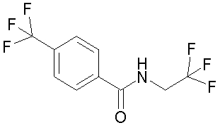 2,2 г этилового эфира (E)-3-[2-(2,2,2-трифтор-этилкарбамоил)-5-трифторметил-фенил]-акриловой кислоты (5,9 ммоль) растворяют в 10 мл метанола и 1,5 мл 5 M водного раствора NaOH (7,5 ммоль). Смесь 18 ч перемешивают при КТ и затем устанавливают pH 7 водным раствором HCl. Растворители отгоняют под вакуумом, и остаток суспендируют в 10 мл воды. В этой суспензии устанавливают pH 2 посредством 2N водного раствора HCl и 3 раза экстрагируют ЭА (по 10 мл). Сушат над Na2SO4 и растворитель отгоняют под вакуумом. Остаток подвергают кристаллизации с системой диэтиловый эфир/ДИП(DIP), т.пл.: 202-204°C.