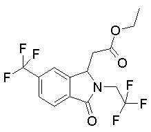 f) этиловый эфир (RS)-[3-оксо-2-(2,2,2-трифтор-этил)-6-трифторметил-2,3-дигидро-1H-изоиндол-1-ил]-уксусной кислоты