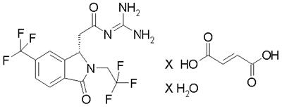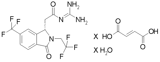 (S)-N-{2-[3-оксо-2-(2,2,2-трифторэтил)-6-трифторметил-2,3-дигидро-1H-изоиндол-1-ил]-ацетил}-гуанидин гидрофумарат гидрат