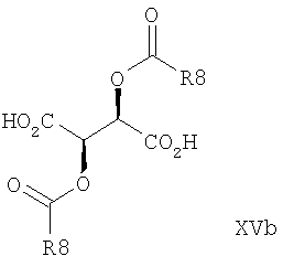 с получением соответствующей соли 2,3-O-ацилированной L-винной кислоты формулы XVb