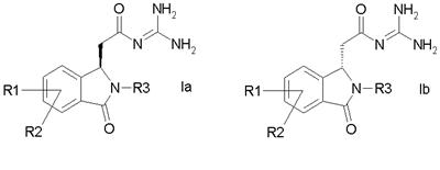 14. Способ по п.13, причем соединение формулы Ib представляет собой (S)-N-{2-[3-оксо-2-(2,2,2-трифторэтил)-6-трифторметил-2,3-дигидро-1Н-изоиндол-1-ил]-ацетил}-гуанидин.