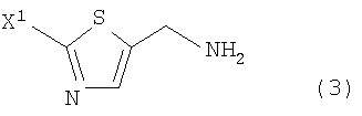 Примеры полученного таким образом производного тиазола (3) включают 5-(аминометил)тиазол, 2-хлор-5-(аминометил)тиазол, 2-бром-5-(аминометил)тиазол и т.д.