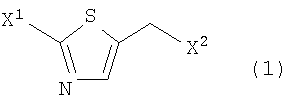 Примеры соединения (1) включают 5-(хлорметил)тиазол, 2-хлор-5-(хлорметил)тиазол, 2-хлор-5-(бромметил)тиазол, 2-бром-5-(бромметил)тиазол, 2-хлор-5-(иодметил)тиазол, 2-бром-5-(иодметил)тиазол, 2-иод-5-(иодметил)тиазол и т.д.