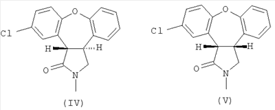 E. Транс-11-хлор-2,3,3a,12b-тетрагидро-2-метил-1H-дибенз[2,3:6,7]-оксепино[4,5-c]пиррол-1-он (IV) и соответствующий цис-изомер (V)