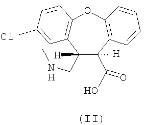 F: гидрохлорид транс-2-Хлор-10,11-дигидро-11-[(метиламино)метил]-дибенз[b,f]оксепин-11-карбоновой кислоты (II)