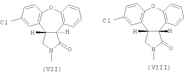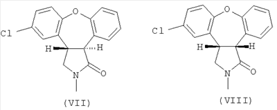 E: транс-5-Хлор-2,3,3a,12b-тетрагидро-2-метил-1H-дибенз[2,3:6,7]оксепино[4,5-c]пиррол-1-он (VII) и цис-5-хлор-2,3,3a,12b-тетрагидро-2-метил-1H-дибенз[2,3:6,7]оксепино[4,5-c]пиррол-1-он (6) (VIII)