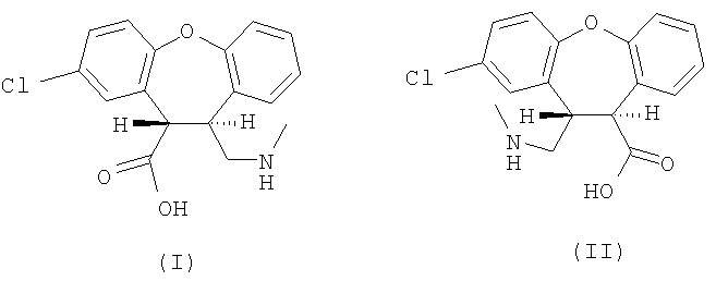 Транс-8-хлор-10,11-дигидро-11-[(метиламино)метил]-дибенз[b,f]оксепин-10-карбоновую кислоту (I) можно получить в виде кристаллического цвиттериона, т.е. свободного основания, когда pH понижают до 6, а не до 1. Кроме того, цвиттерион транс-8-хлор-10,11-дигидро-11-[(метиламино)метил]-дибенз[b,f]оксепин-10-карбоновой кислоты (I) можно получить из гидрохлоридной соли растворением в смеси метанола и воды, нейтрализацией до pH 6 при помощи раствора аммиака или гидроксида натрия и выпариванием метанола с получением свободного основания (I) в виде твердого вещества.