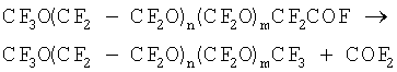 Для удаления фторангидридных групп продукт-сырец подвергается стабилизации элементарным фтором при t=180-260°С. После стабилизации полиперфторэтиленоксид является полностью инертным и имеет следующую формулу:
